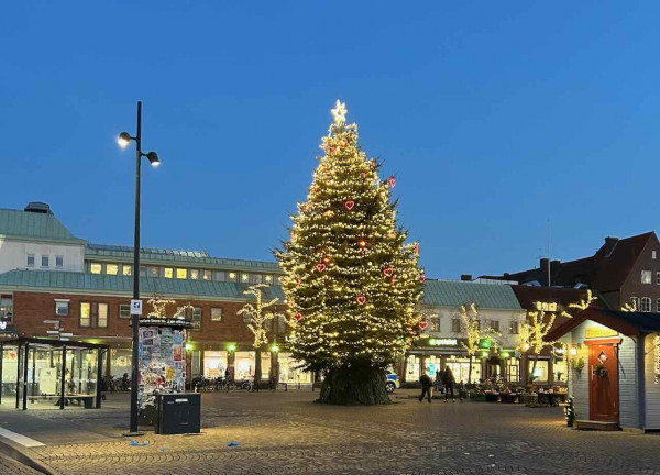 Var en sväng på stan igår. Nästan folktomt, men farbror grip fanns på plats bak granen för att skydda oss julhahandlare.